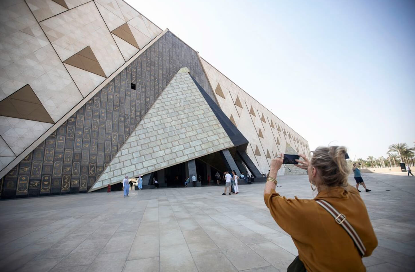 - Rooms have balcony views of the pyramids and the Grand Egyptian Museum, 800 meters away.